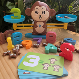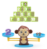 This 65 piece toy set includes 19 monkeys, numbers ranging 1-10, 30 double sided cards of three different difficulties, a base, and 2 scale pans with easy to read instructions.